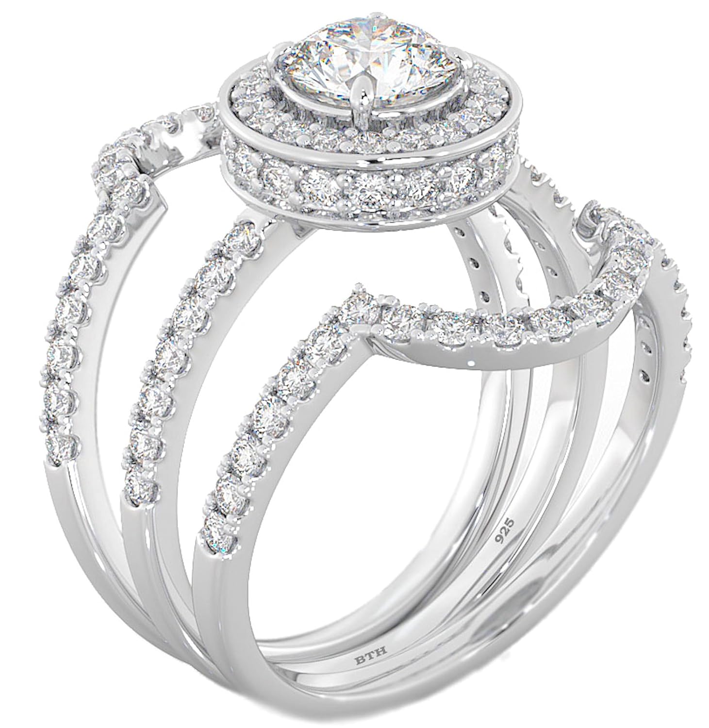 Ladies Ring Halo Design 3 Piece 925 Sterling Silver Luxury