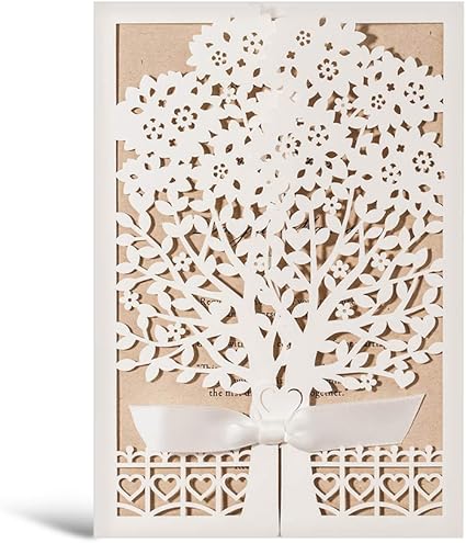 Amazon Com Wishmade Rustic Laser Cut Wedding Invitations Ivory
