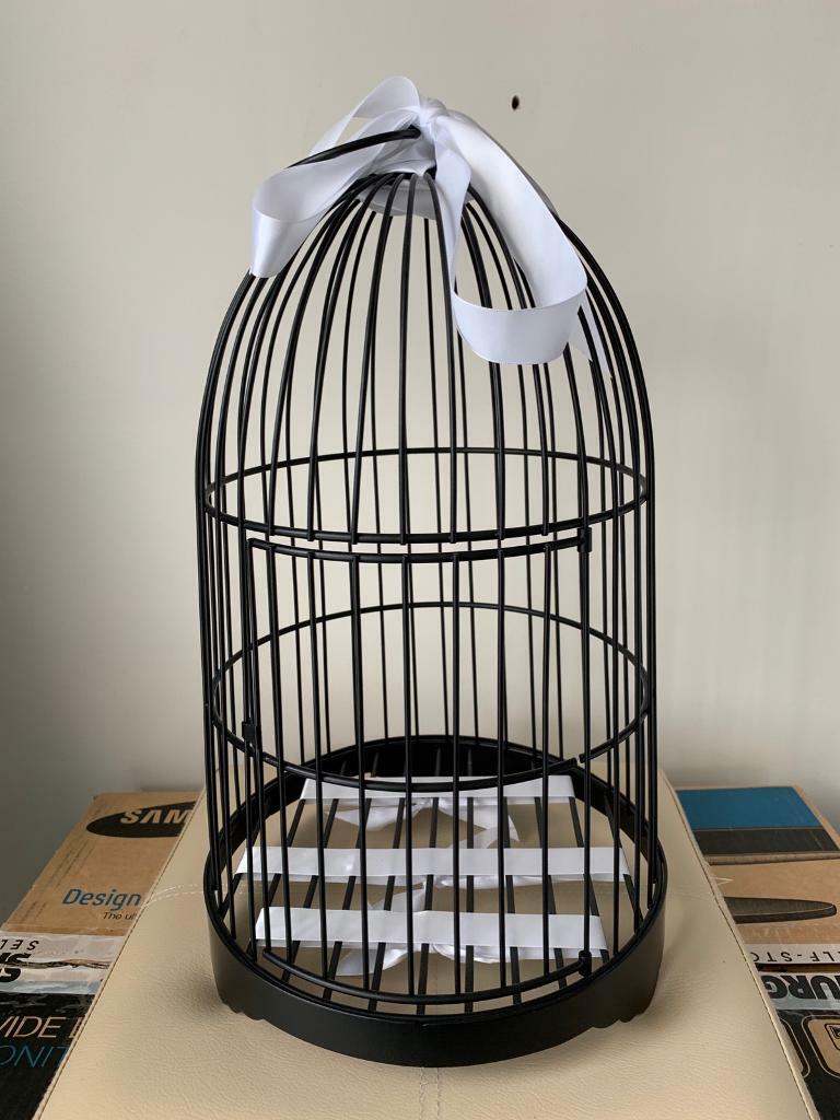 Ornamental Black Metal Bird Cage Wedding Card Holder In