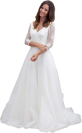 V Neckline Simple Boho Beach Wedding Dress Organza Narsbridal