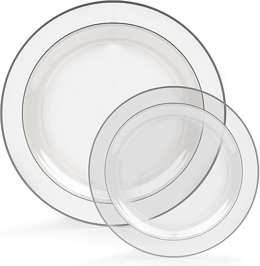 Amazon Com 60 Silver Rim Plastic Plates Set Bulk Clear Silver