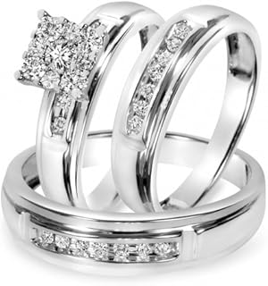Wedding And Engagement Trio Diamond Ring Set For Him And Her