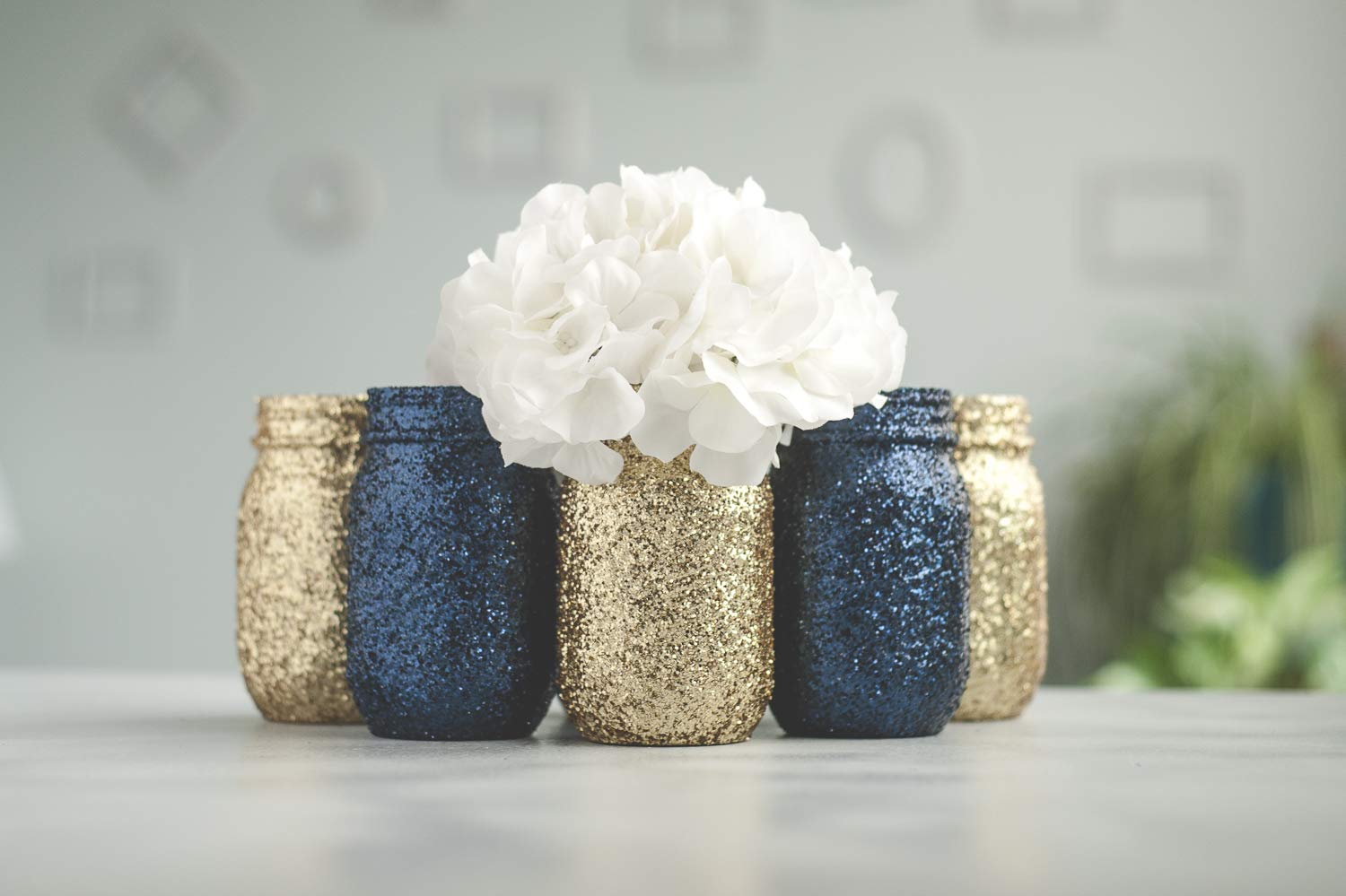 Amazon Com 6 Gold And Navy Blue Wedding Centerpieces Vases Bulk