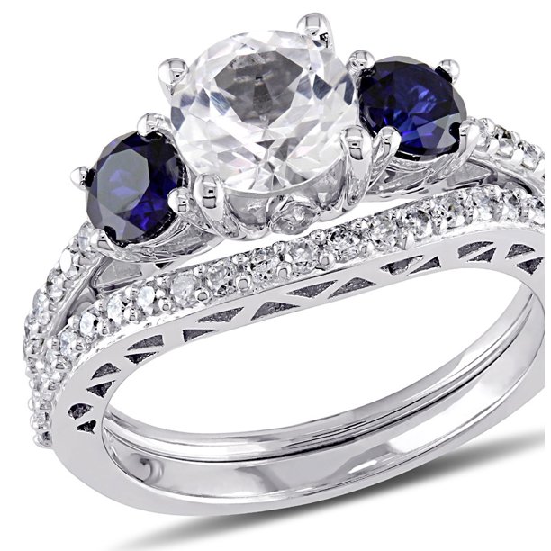 Gem And Harmony Created White Created Blue Sapphire 2 Carat