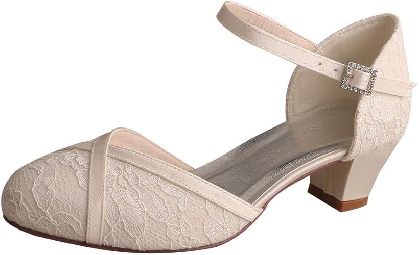 Elegantpark Lace Wedding Shoes Closed Toe Bridal Shoes Women Mary