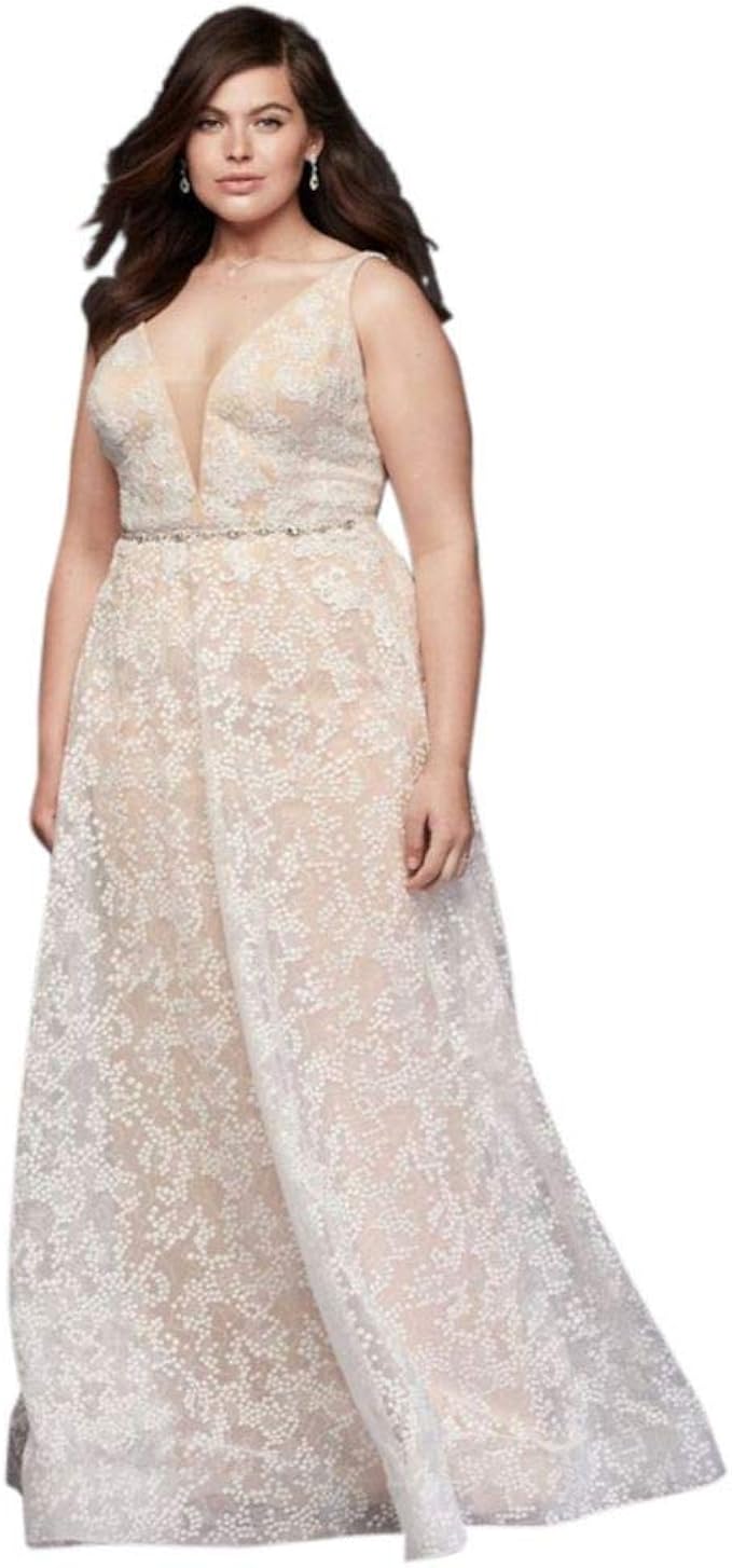 Strappy V Neck Lace Plus Size Sheath Wedding Dress Style 9wg3959