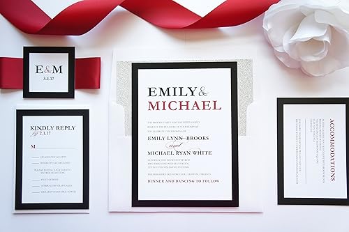 Amazon Com Modern Red And Black Wedding Invitation Sample Set