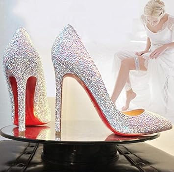 Peep Toe Crystal High Heel Wedding Shoes Silver Bridal Dress Shoes