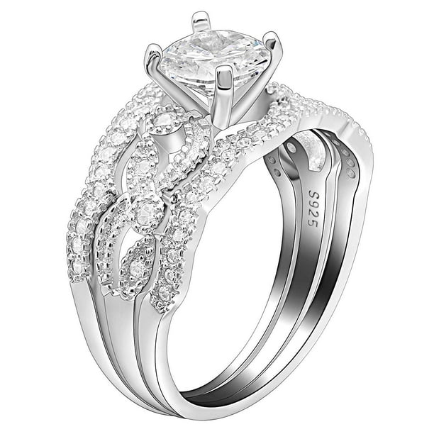 New Wedding Ring Set Hi And Her Tungsten 925 Sterling Silver
