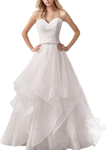 Strapless A Line Tiered Tulle Wedding Dress For Bride Bridal Gown