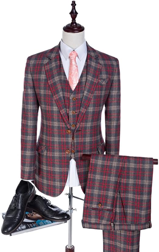 New Tweed Men Suits Tailored Plaid Terno Wedding Suit 2 Buttons