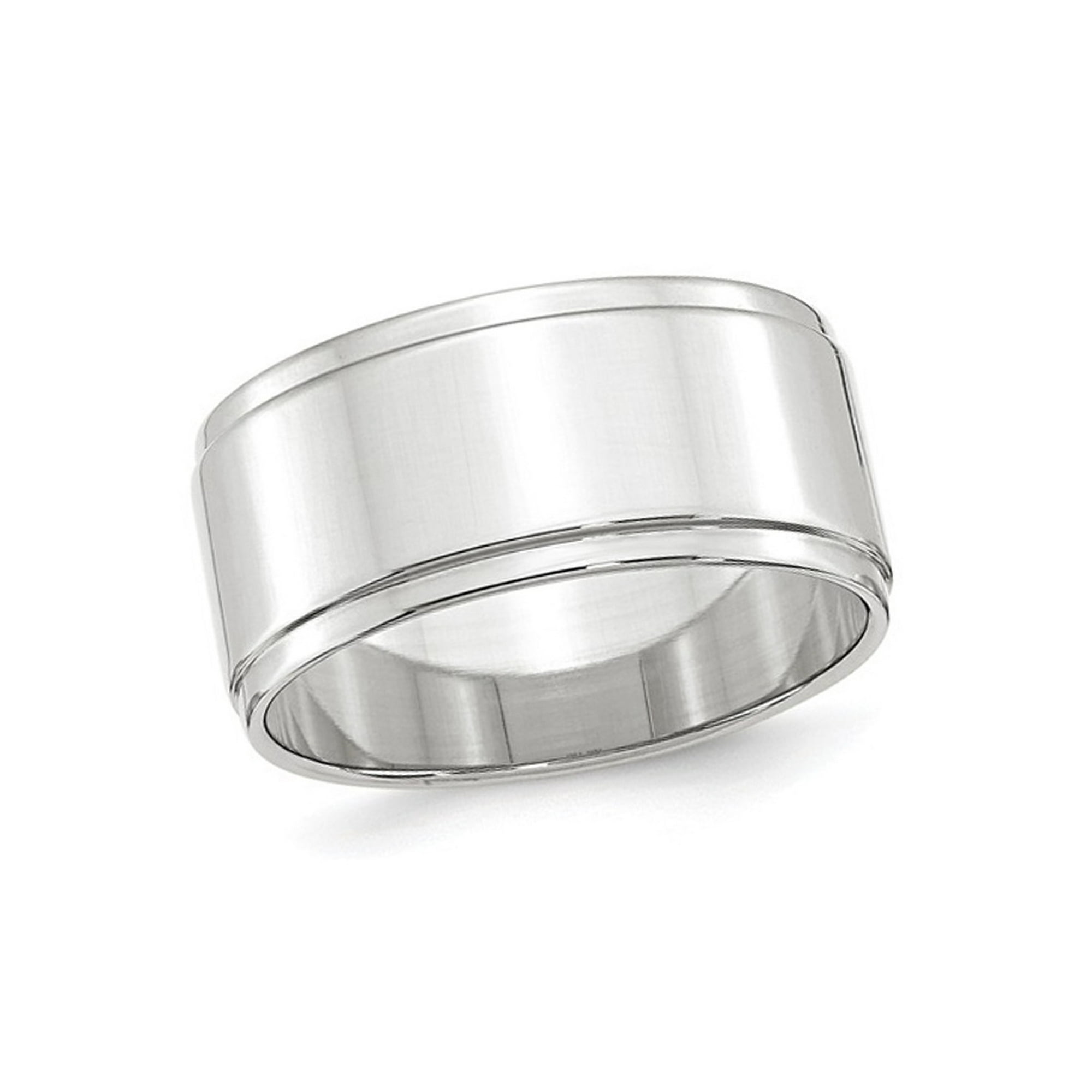 Mens 10k White Gold 10mm Flat Wedding Band With Step Edge
