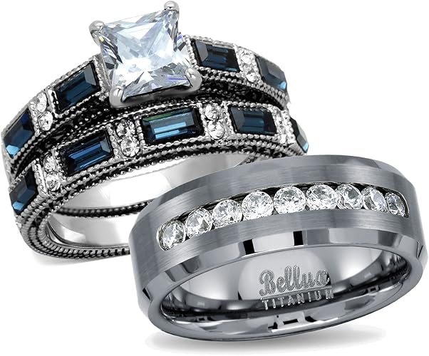 Amazon Com Bellux Style His Hers Wedding Ring Sets Women S