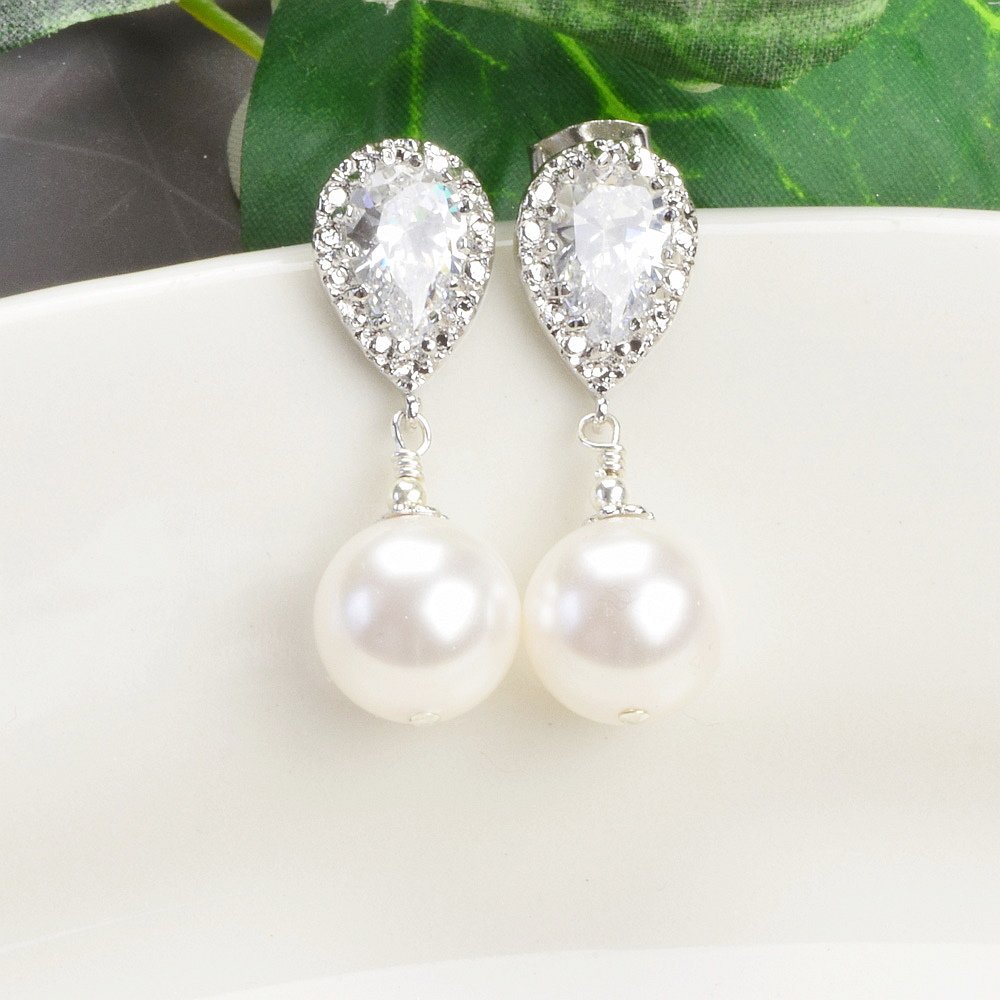 Amazon Com White Pearl Drop Earrings Bridal Swarovski Pearl