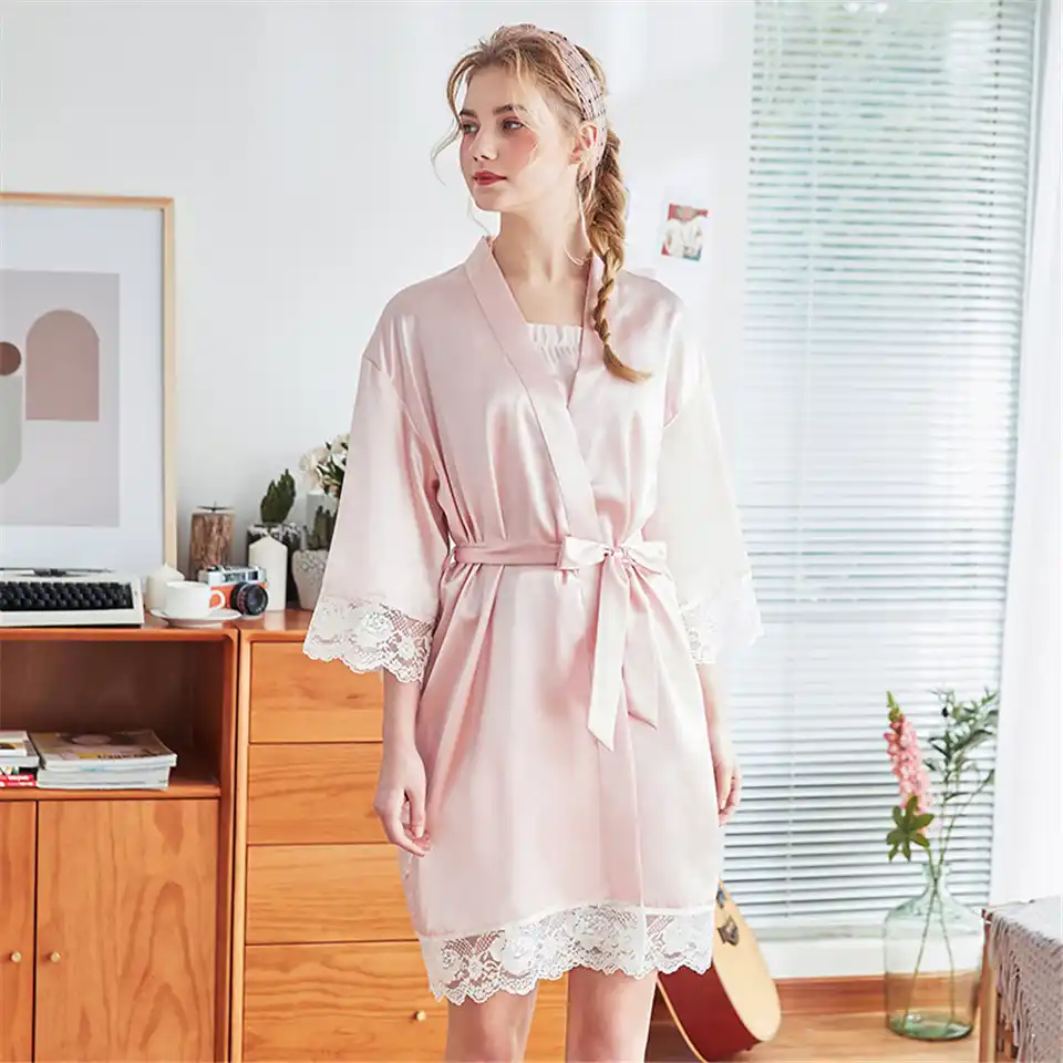 Satin Lingerie Lace Nightgown Wedding Dressing Gown Embroidered