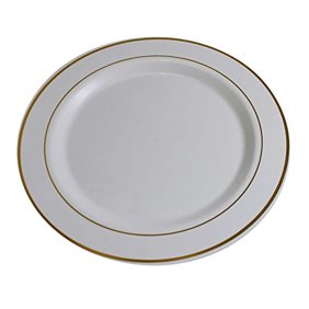 90 Gold Rim Plastic Plates Bulk Dinner Wedding Disposable