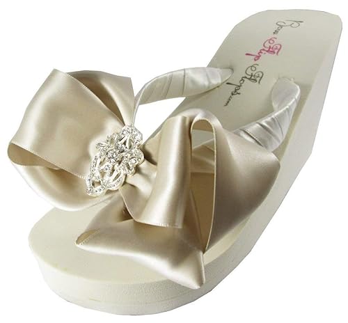 Amazon Com Bridal Flip Flops Oatmeal Champagne Satin Bows Wedding
